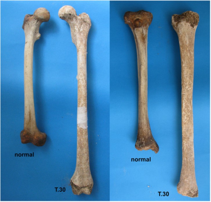 Kosti mladića koji je imao gigantizam upoređene sa drugim koje su normalnog rasta (Minozzi et al. 2012)