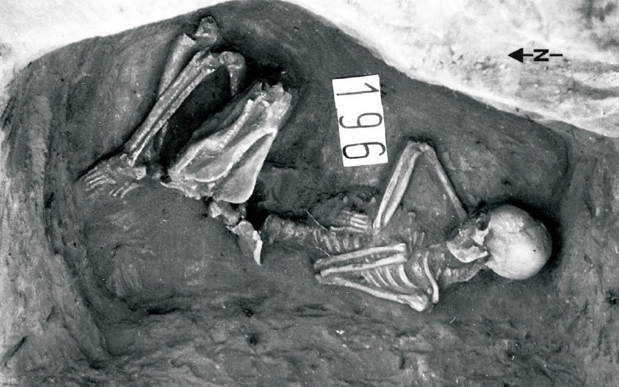 Grob 196 izdvajа se kao posebno zanimljiv primer. U njega je položena probijena lobanja svinje, a isto tako i lobanja žene sahranjene u njemu. Lobanja je bila položena na butne kosti pokojnice.