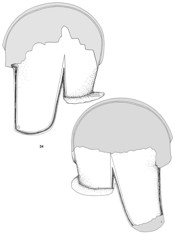 Otkriveni ilirski šlemovi, slikano sa potiljačne strane (foto: M. Blečić Kavur 2009), izvor: Blečić Kavur i Miličević-Capek 2011)