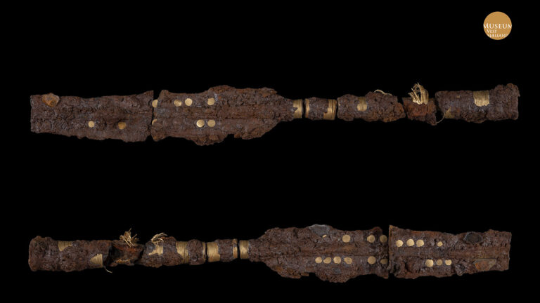 Kombinacija gvožđa, tada još uvek izuzetno retkog i tehnološki inovativnog materijala, i luksuznog zlata ukazuje na oružje koje je pripadalo društvenoj eliti.